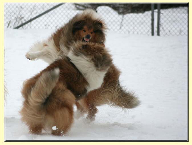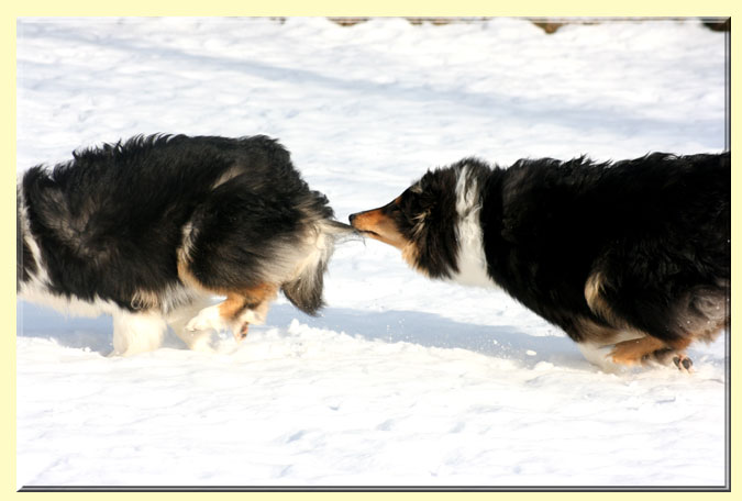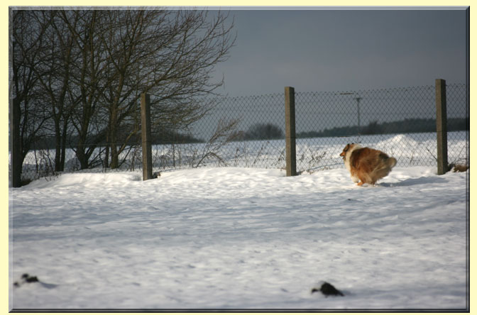 Fröhliches Treiben auf der verschneiten Wiese!