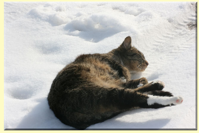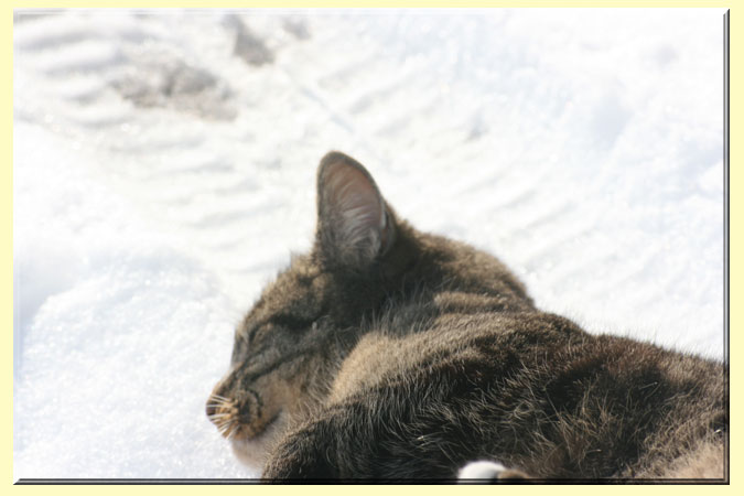 In der Mittagssonne genießt Katerchen "Ulli" ein kleines Nickerchen.