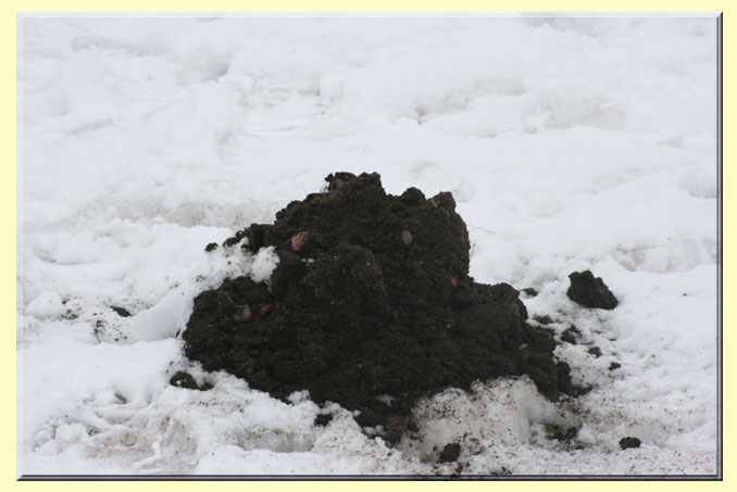 Ahaaa .... , der beliebte Maulwurfshügel ist über die Schneedecke hinausgewachsen!